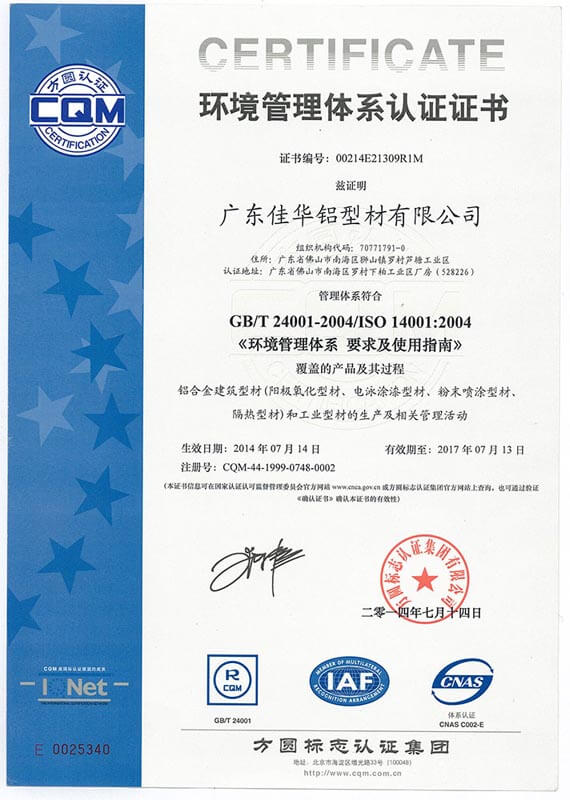 環境管理體系認證證書