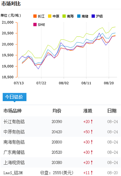 鋁錠價(jià)格今日鋁價(jià)2021-08-24