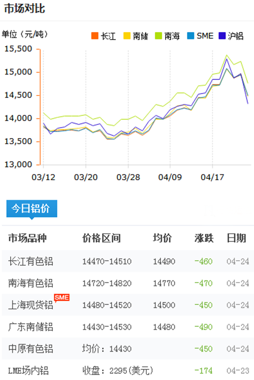 鋁錠價格今日鋁價2018-4-24