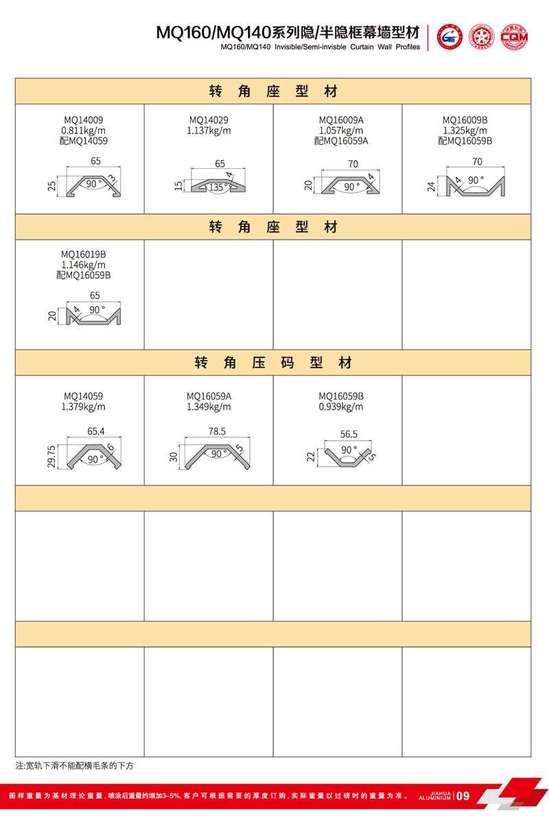 鋁型材規(guī)格型號:MQ160/MQ140 B