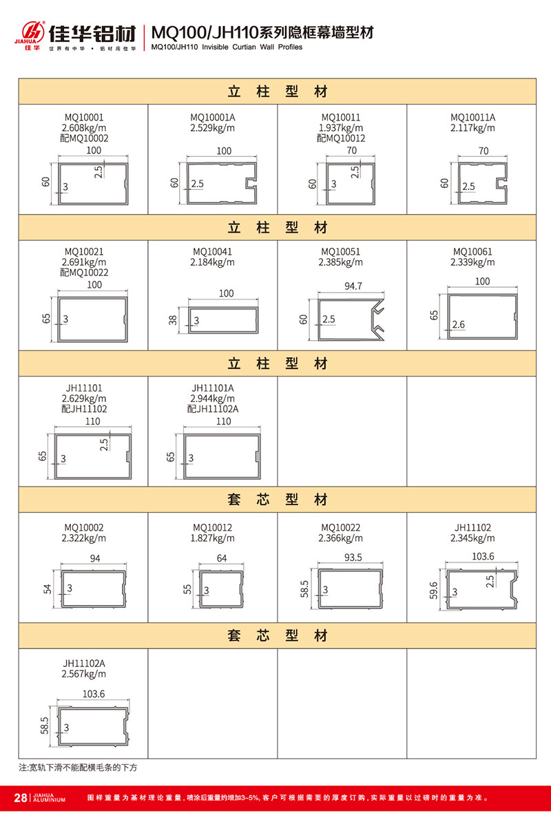 鋁型材規(guī)格型號:MQ100/JH110 A