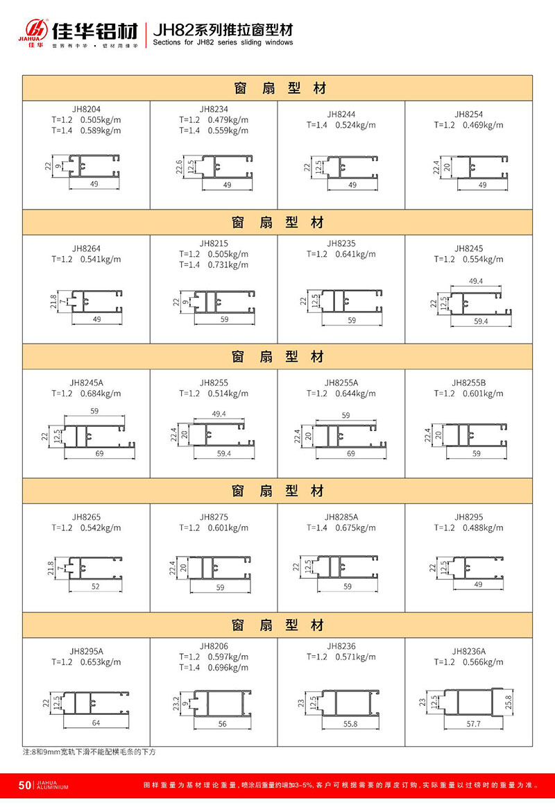 鋁型材規格型號:JH82