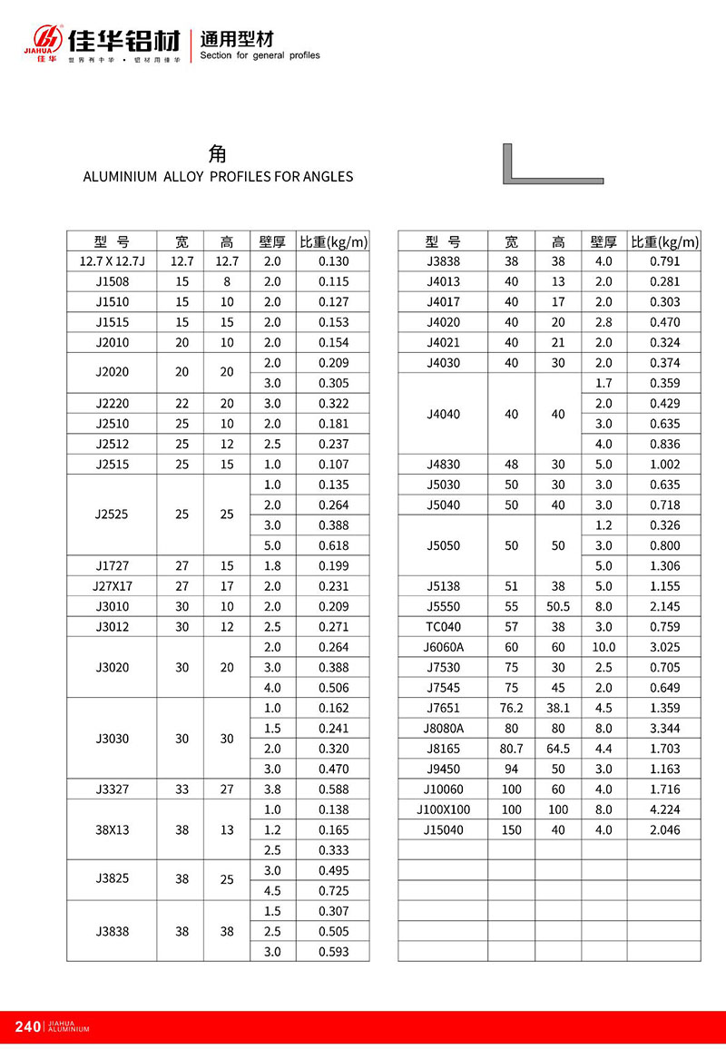 鋁型材規格型號:角鋁型材