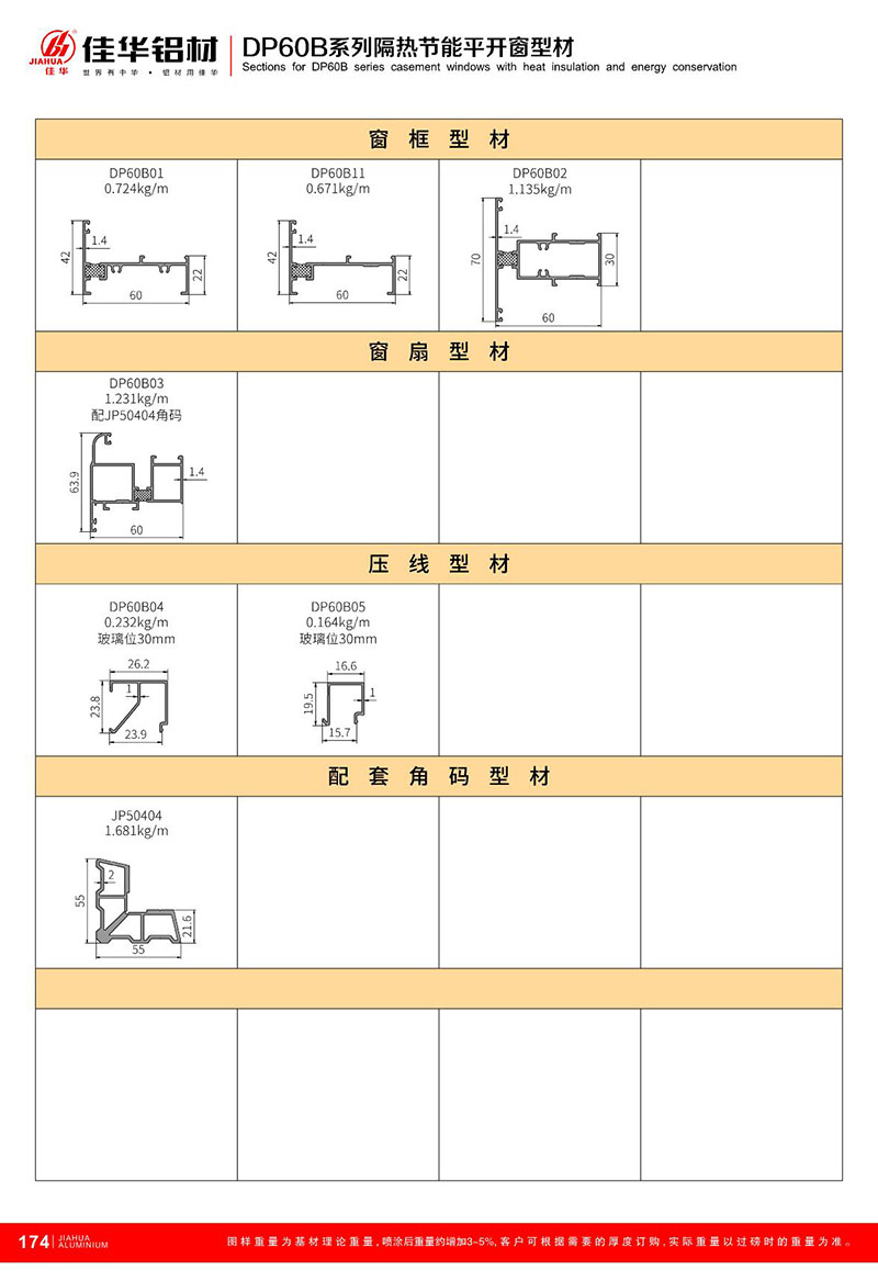 鋁型材規格型號:DP60B平開系列